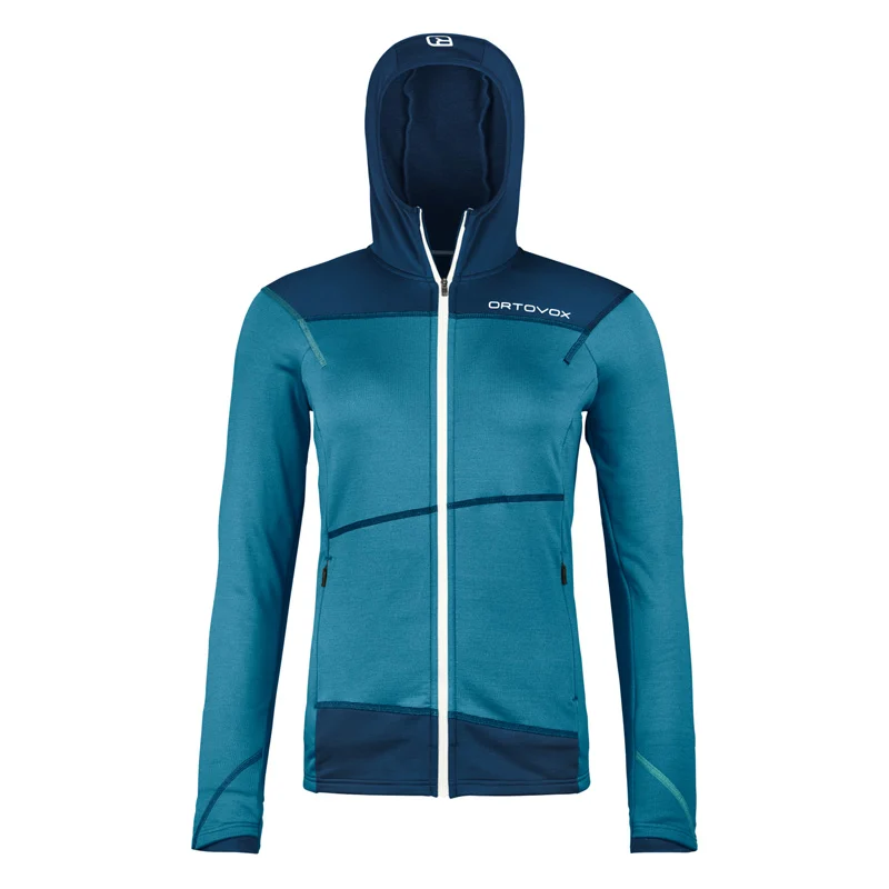 Zug um Zug zuverlässig, robust und atmungsaktiv: Von der ersten Mehrseillänge in Arco bis hin zur Bigwall im Yosemite ist der FLEECE RIB JACKET für Damen in seinem Element. An besonders beanspruchten Stellen wie Unterarmen und Hüfte schützen robuste Einsätze aus MERINO SHIELD TEC vor Abrieb durch scharfe Felsen und den Klettergurt. Der Schnitt mit erweitertem Achselbereich bietet auch bei weiten Zügen viel Bewegungsfreiheit. Die feine Kanalstruktur auf der Innenseite des elastischen MERINO FLEECE RIB Materials sorgt einerseits für angenehme Belüftung und zeigt gleichzeitig hohe Isolationsfähigkeiten. Zusätzlich wirkt die weiche Merinowolle auf der Haut feuchtigkeits- und temperaturregulierend sowie geruchshemmend. Mit dem 2-Wege-Front-Reißverschluss kann die Jacke schnell und komfortabel über den Klettergurt angezogen werden. Der hohe Kragen schützt zuverlässig vor Kälte und Wind, während zwei Fronttaschen reichlich Platz bieten. Gemacht für schroffe Wände und lange Routen: Beim Einsatz am Fels darf die vielseitige FLEECE RIB JACKET für Damen nicht fehlen.